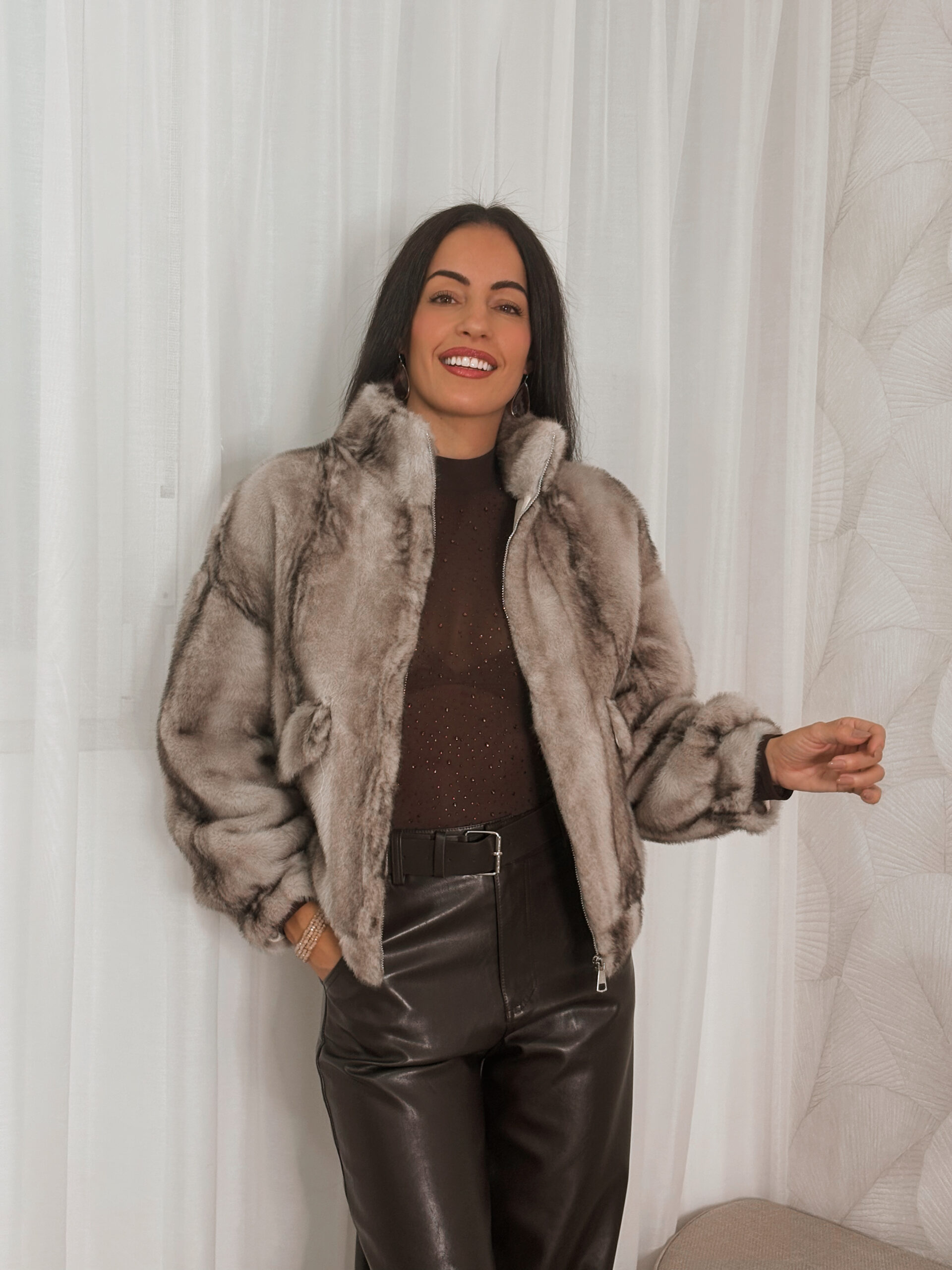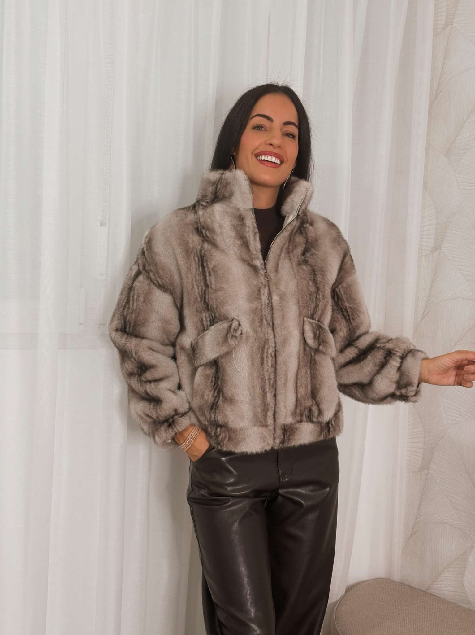 Nuestra Bomber de Pelo Color Crema combina elegancia, suavidad y comodidad en una sola prenda. Confeccionada en un pelo sintético, su textura es agradable y suave.